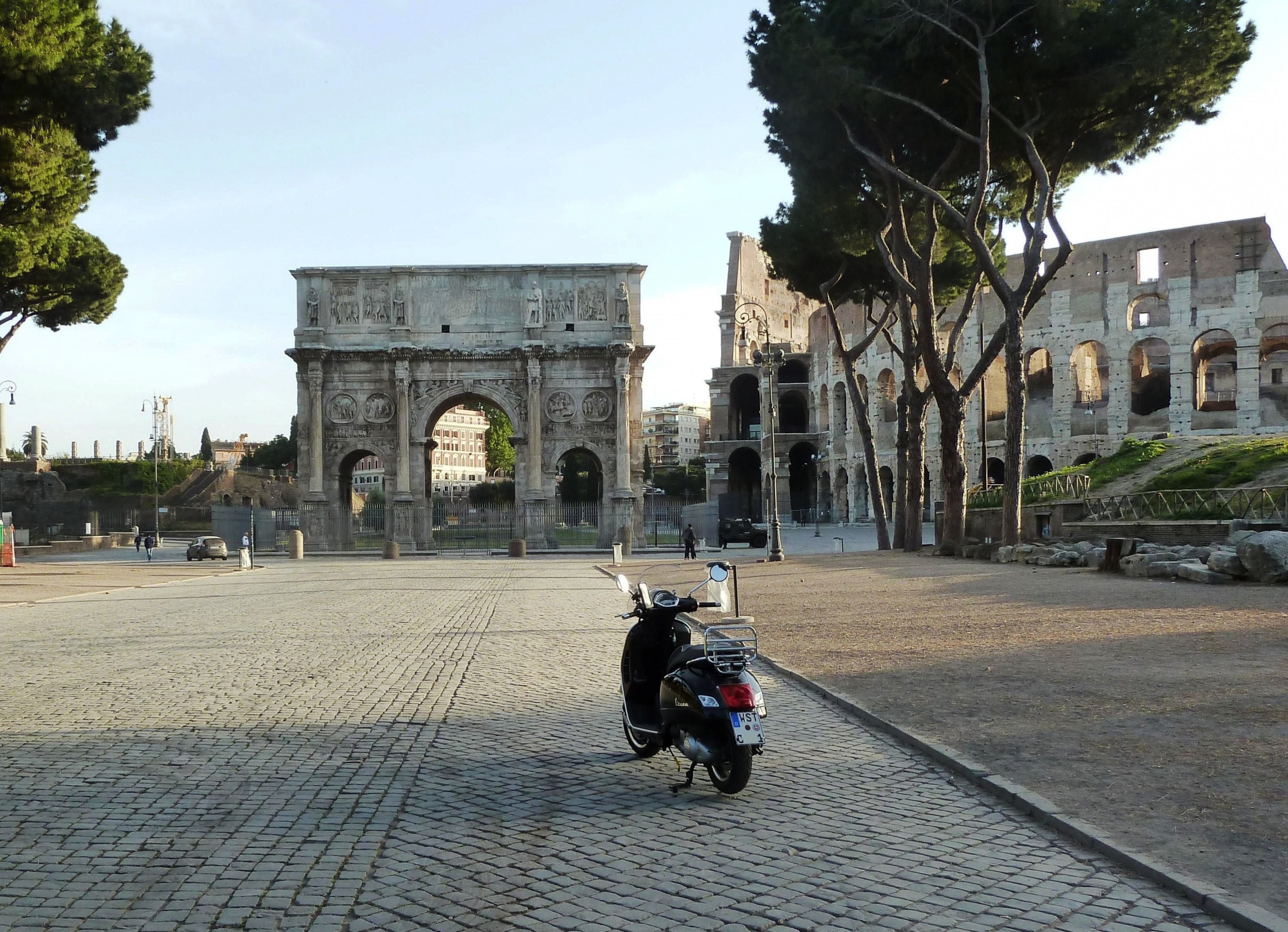 Konstantinsbogen und Kolosseum in Rom (Italien) - Vespa GTS 300