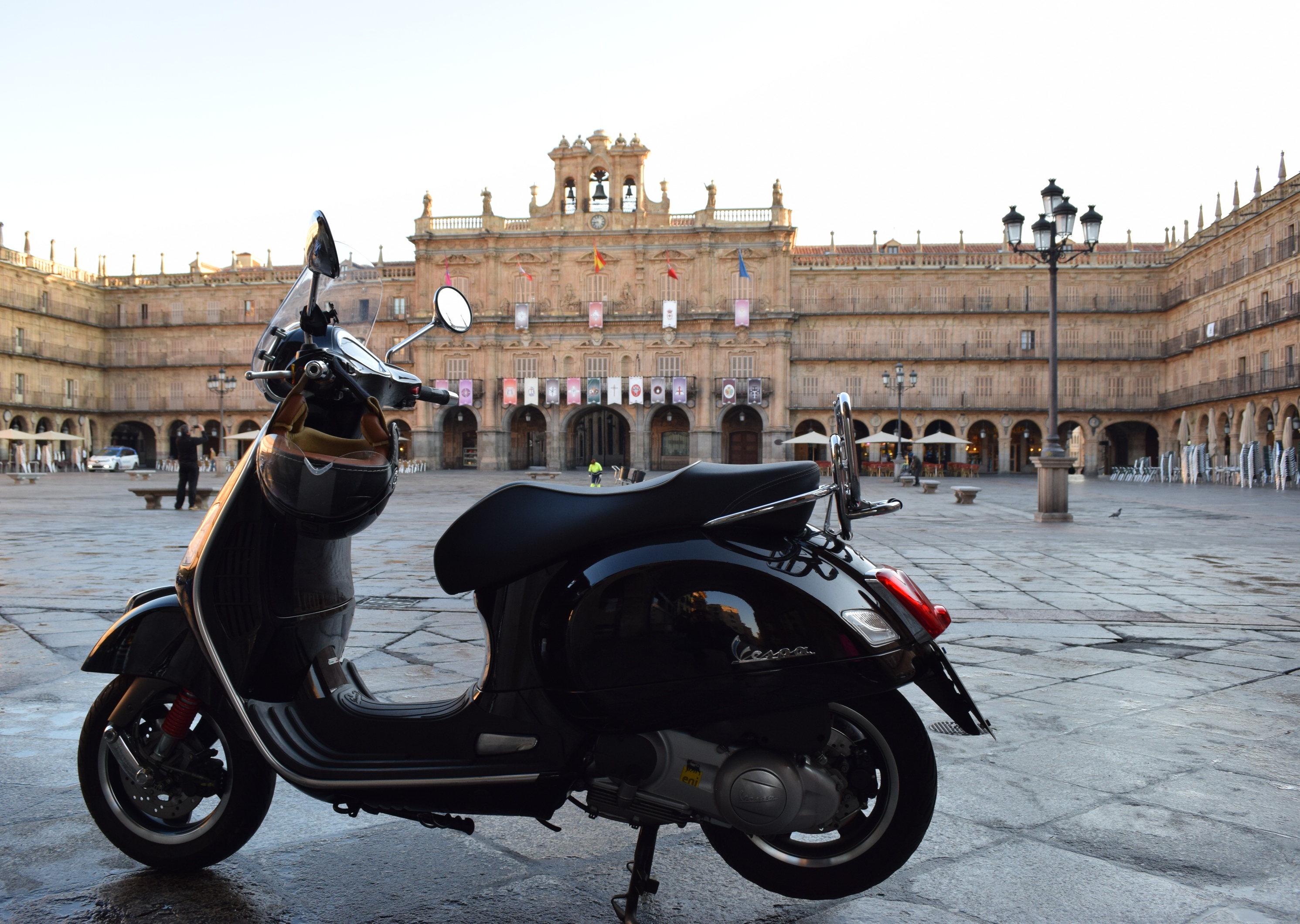 Salamanca, Spanien, Plaza Mayor, Vespa GTS 300