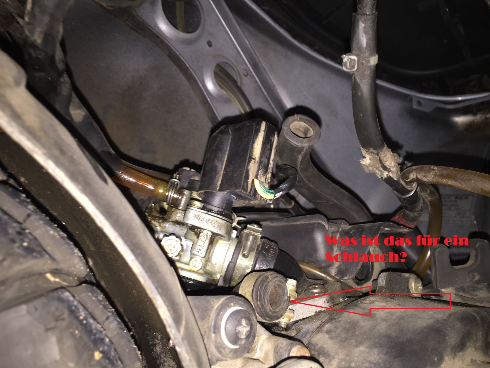 Na auf jeden Fall roch die Vespa nach einer kleinen Spritztour sehr stark nach Benzin bzw. Abgase. Ich hab dann mal den Vergaser angeschaut und einen unangeschlossenen Schlauch mit Schelle entdeckt, aber kann nicht zuordnen, wo die hingehört (siehe Foto).