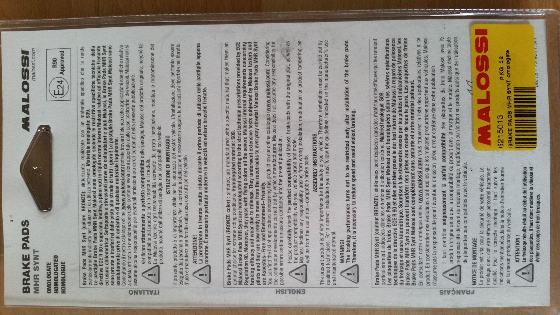 Betreff des Beitrags: Bremsbeläge MALOSSI MHR Synt, S51, vorne