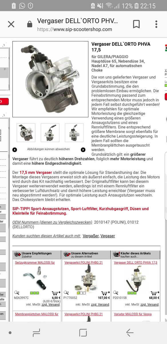 Hab denn hier eingebaut denn weber vergaser.uund würde mir gerne denn ein bauen wenn der Past brauche ich noch ein neuen choke der für denn dellorto passt wenn ja welchen?