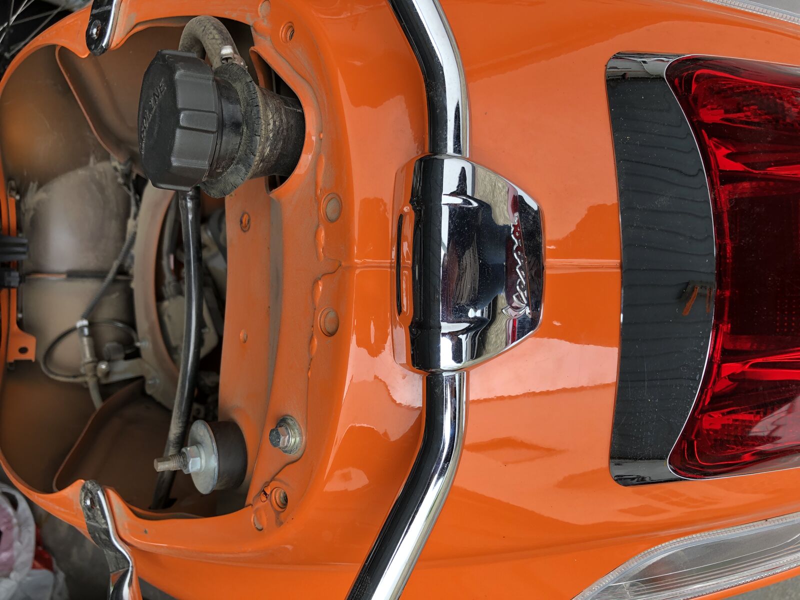 Diesen bekomme ich nicht montiert. Habe soweit alle Schrauben entfernt, aber das Vespa Emblem geht nicht ab (siehe Bild). Wenn mir jemand einen Tipp geben kann, wie ich alles abbekomme, wäre ich sehr dankbar!!