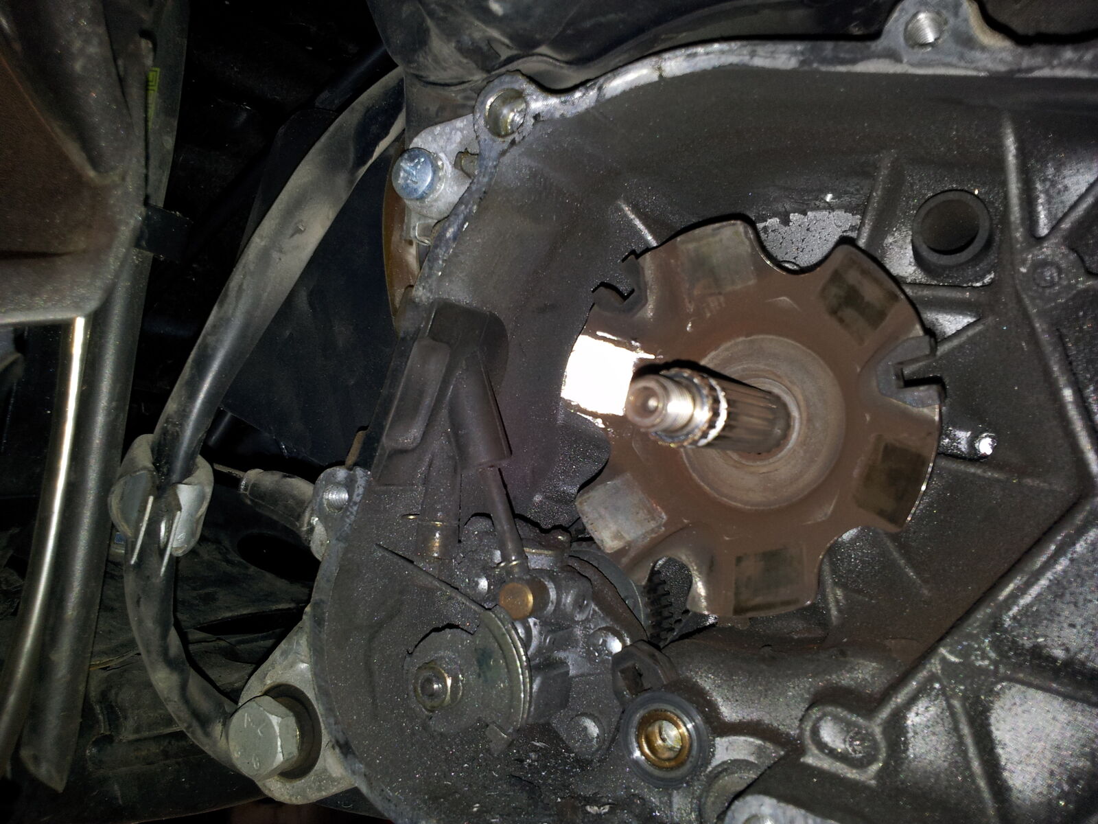 Kurbelwelle, Variomatik komplett, Fahrriemen, Ölpumpenriemen, Starter Ritzel, der Motor muss komplett zerlegt werden. Das ist die erste Prognose, die er gestellt hat.