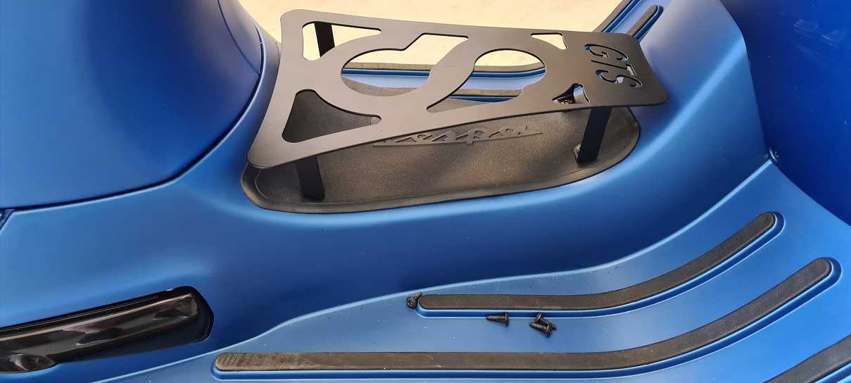 Habe meinen neuen Gepäckträger von Jail Break Customs heute zur Probe montiert. Leider passt er optisch überhaupt nicht zum Rest meiner Vespa. Werde mmir einen anderen suchen der besser passt. Ist nagel neu und unbenutzt. Nur zur Ansicht montiert. Ist die Version mit integrierten Flaschen/Dosenhalter und dem Schriftzug GTS